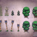 I worked on three of the background tilesets for this game and this project marked a departure for me as previously I had only created tileset art in pixel art. For this one the games art assets were being created in Adobe Illustrator and Photoshop which at that time I had not used for a couple of years. Me vector illustration tool of choice at this time was Xara Studio and Inkscape, so this is what I used to create the graphics for this one.